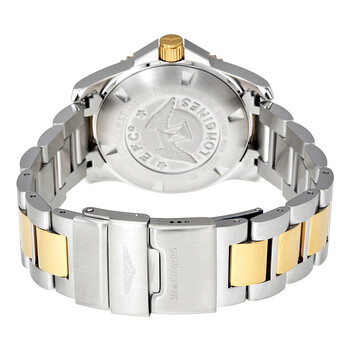 Stainless steel case with a stainless steel bracxelet with yellow gold PVD links. Uni-directional rotating yellow gold PVD bezel with an inlaid black ring. Black dial with luminous yellow gold-tone hands and index hour markers. Arabic numerals appear at the 6, 9 and 12 o'clock positions. Minute markers around the outer rim. Dial Type: Analog. Luminescent hands and markers. Date display at the 3 o'clock position. Longines calibre L633 automatic movement, based upon ETA 2824-2, containing 25 Jewels, bitting at 28800 vph, and has a power reserve of approximately 38 hours. Scratch resistant sapphire crystal. Screw down crown. Solid case back. Round case shape. Case size: 41 mm. Band width: 21 mm. Fold over clasp with a safety release. Water resistant at 300 meters / 1000 feet. Functions: date, hour, minute, second. Hydroconquest Series. Luxury watch style. Watch label: Swiss Made. Longines HydroConquest Automatic Black Dial Men's Watch L36423567.