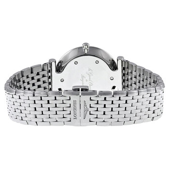 Stainless steel case with a stainless steel bracelet. Fixed silver-tone bezel set with diamonds. Black dial with silver-tone hands and diamond hour markers. Dial Type: Analog. Quartz movement. Scratch resistant sapphire crystal. Pull / push crown. Solid case back. Case diameter: 29 mm. Case thickness: 4.6 mm. Round case shape. Band width: 16 mm. Triple folding safety clasp. Water resistant at 30 meters / 100 feet. Functions: hour, minute. Dress watch style. Longines La Grande Classique Black Dial Stainless Steel Ladies Watch L43080576.