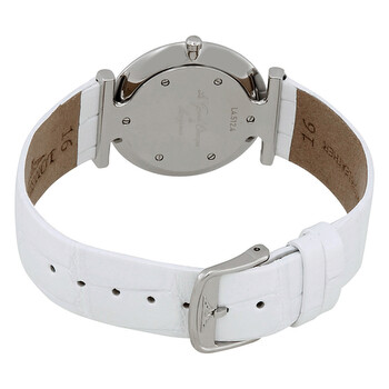 Stainless steel case with a white (alligator) leather strap. Fixed stainless steel bezel. White mother of pearl dial with black hands. No markers. Dial Type: Analog. Longines calibre L420 quartz movement. Scratch resistant sapphire crystal. Pull / push crown. Solid case back. Round case shape. Case size: 29 mm. Band width: 16 mm. Tang clasp. Water resistant at 30 meters / 100 feet. Functions: hour, minute. Dress watch style. Watch label: Swiss Made. Longines La Grande Classique de Longines White Mother of Pearl Dial Ladies Watch L45124052.