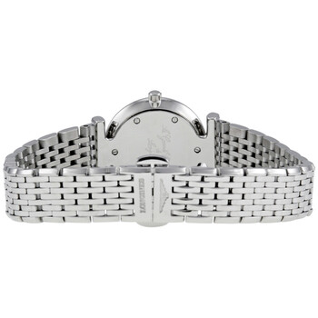 Stainless steel case with a stainless steel bracelet. Fixed stainless steel bezel set with 48 diamonds. Black dial with silver baton hands and diamond hour markers. Dial Type: Analog. Quartz movement. Scratch resistant sapphire crystal. Solid case back. Case diameter: 24 mm. Case thickness: 4.6 mm. Band length: 6 inches. Deployment clasp. Water resistant at 30 meters / 100 feet. Functions: hours and minutes. Casual watch style. Watch label: Swiss Made. Longines La Grande Classique Diamond Ladies Watch L42410586.