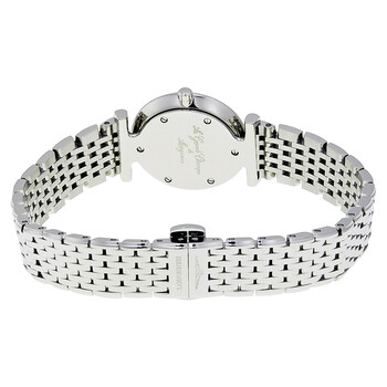 Silver-tone stainless steel case and bracelet. Fixed silver-tone stainless steel bezel. Silver "flinque" dial with black hands and Roman numeral hour markers. Dial Type: Analog. Longines Calibre L209 quartz movement. Scratch resistant sapphire crystal. Pull / push crown. Solid case back. Round case shape, case size: 24 mm, case thickness: 4.3 mm. Band width: 13 mm. Fold over clasp with a push button release. Water resistant at 30 meters / 100 feet. Functions: hour, minute. La Grande Classique Series. Casual watch style. Watch label: Swiss. Item Variations: L4 209 4 71 6, L4-209-4-71-6, L4/209/4/71/6, L42094716. Longines La Grande Classique Ladies Watch L4.209.4.71.6.
