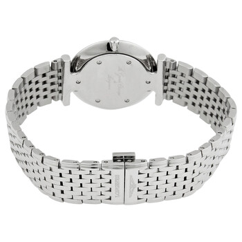 Stainless steel case with a stainless steel bracelet. Fixed stainless steel bezel. Mother of pearl dial with black hands. No markers. Dial Type: Analog. Longines Calibre L420 quartz movement. Scratch resistant sapphire crystal. Pull / push crown. Solid case back. Round case shape. Cse size: 29 mm. Case thickness: 4.2 mm. Deployment clasp. Water resistant at 30 meters / 100 feet. Functions: hour, minute. La Grande Classique Series. Dress watch style. Watch label: Swiss Made. Longines La Grande Classique Quartz Mother of Pearl Dial Ladies Watch L4.512.4.04.6.