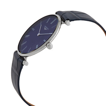 Silver-tone stainless steel case with a blue alligator band. Fixed silver-tone stainless steel bezel. Blue dial with silver-tone hands and Roman numeral hour markers. Dial Type: Analog. Longines Calibre L420 quartz movement. Scratch resistant sapphire crystal. Solid case back. Round case shape, case size: 38 mm. Buckle clasp. Water resistant at 30 meters / 100 feet. Functions: hour, minute. Additional Info: original box, international warranty card, manual (complete accessories). La Grande Series. Luxury watch style. Watch label: Swiss Made. Longines La Grande Quartz Blue Dial Unisex Watch L4.866.4.94.2.