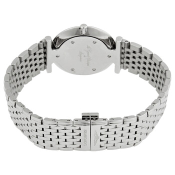 Stainless steel case with a stainless steel bracelet. Fixed stainless steel bezel. White dial with black hands. No markers. Dial Type: Analog. Longines calibre L420 quartz movement. Scratch resistant sapphire crystal. Pull / push crown. Solid case back. Round case shape. Case size: 29 mm. Case thickness: 4.2 mm. Deployment clasp. Water resistant at 30 meters / 100 feet. Functions: hour, minute. La Grande Classique Series. Dress watch style. Watch label: Swiss Made. Longines La Grande Quartz White Dial Ladies Watch L4.512.4.05.6.