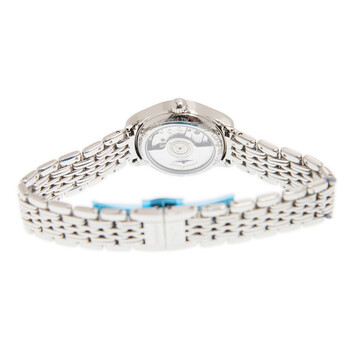 Silver-tone stainless steel case with a silver-tone stainless steel bracelet. Fixed silver-tone stainless steel bezel. Blue dial with silver-tone sword-shaped hands and index hour markers. Minute markers around the outer rim. Dial Type: Analog. Date display at the 3 o'clock position. Longines Calibre L595/592 Automatic movement, based upon ETA 2000-1, containing 20 Jewels, bitting at 28800 vph, and has a power reserve of approximately 40 hours. Scratch resistant sapphire crystal. Pull / push crown. Transparent case back. Round case shape, case size: 25 mm. Deployment with push button release clasp. Water resistant at 30 meters / 100 feet. Functions: date, hour, minute, second. Additional Info: original box, international warranty card, manual (complete accessories). Longines Lyre Series. Luxury watch style. Watch label: Swiss Made. Longines Longines Lyre Automatic Blue Dial Watch L43604926.