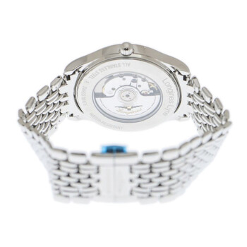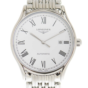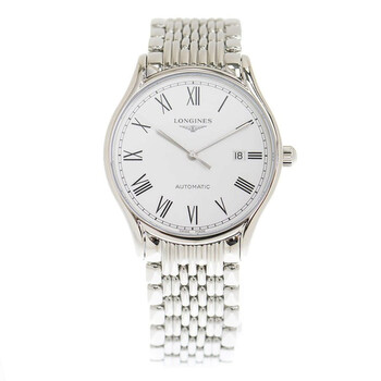 Silver-tone stainless steel case and bracelet. Fixed silver-tone stainless steel bezel. White dial with silver-tone hands and Roman numeral hour markers. Minute markers around the outer rim. Dial Type: Analog. Date display at the 3 o'clock position. Longines Calibre L888 Automatic movement, based upon ETA A31.L11, containing 21 Jewels, bitting at 25200 vph, and has a power reserve of approximately 64 hours. Scratch resistant sapphire crystal. Transparent see through case back. Round case shape, case size: 40 mm, case thickness: 8.7 mm. Deployment with push button release clasp. Water resistant at 30 meters / 100 feet. Functions: date, hour, minute, second. Additional Info: original box, international warranty card, manual (complete accessories). Lyre Series. Luxury watch style. Watch label: Swiss Made. Longines Lyre Automatic White Dial Men's Watch L4.961.4.11.6.