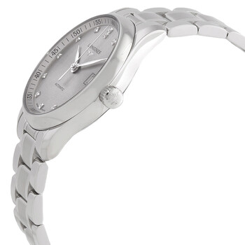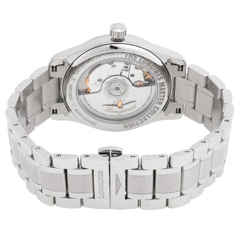 Silver-tone stainless steel case and bracelet. Fixed silver-tone stainless steel bezel. Brown dial with silver-tone hands and diamond hour markers. Minute markers around the outer rim. Dial Type: Analog. Date display at the 3 o'clock position. Longines Calibre L888 Automatic movement, based upon ETA A31.L11, containing 21 Jewels, bitting at 25200 vph, and has a power reserve of approximately 64 hours. Scratch resistant sapphire crystal. Transparent see through case back. Round case shape, case size: 34 mm. Fold over clasp with a safety release. Water resistant at 30 meters / 100 feet. Functions: date, hour, minute, second. Master Series. Luxury watch style. Watch label: Swiss Made. Longines Master Automatic Diamond Brown Dial Ladies Watch L2.357.4.07.6.