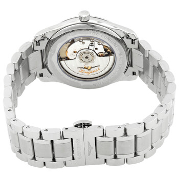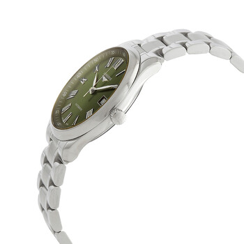 Silver-tone stainless steel case and bracelet. Silver-tone stainless steel bezel. Green dial with silver-tone hands and Roman numeral hour markers. Minute markers around the outer rim. Dial Type: Analog. Date display at the 3 o'clock position. Longines Calibre L888 Automatic movement, based upon ETA A31.L11, containing 21 Jewels, bitting at 25200 vph, and has a power reserve of approximately 64 hours. Scratch resistant sapphire crystal. Transparent see through case back. Round case shape, case size: 40 mm. Deployment with push button release clasp. Water resistant at 30 meters / 100 feet. Functions: date, hour, minute, second. Additional Info: original box, international warranty card, manual (complete accessories). Master Series. Luxury watch style. Watch label: Swiss Made. Longines Master Automatic Green Dial Men's Watch L2.793.4.09.6.