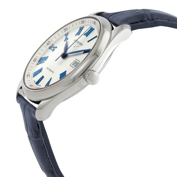 Silver-tone stainless steel case with a blue leather strap. Fixed silver-tone stainless steel bezel. Silver-tone dial with blue hands and Roman numeral hour markers. Minute markers around the outer rim. Dial Type: Analog. Date display at the 3 o'clock position. Longines Calibre L888 Automatic movement, based upon ETA A31.L11, containing 21 Jewels, bitting at 25200 vph, and has a power reserve of approximately 64 hours. Scratch resistant sapphire crystal. Transparent see through case back. Round case shape, case size: 40 mm, case thickness: 9.35 mm. Deployment with push button release clasp. Water resistant at 30 meters / 100 feet. Functions: date, hour, minute, second. Additional Info: original box, international warranty card, manual (complete accessories). Master Series. Luxury watch style. Watch label: Swiss Made. Longines Master Automatic Silver Dial Men's Watch L2.793.4.79.2.