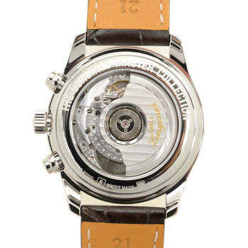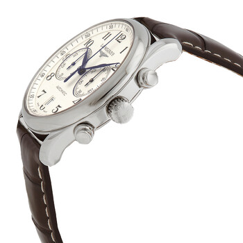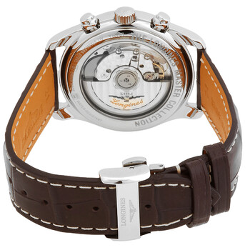 Stainless steel case with a brown (alligator) leather strap. Fixed stainless steel bezel. Silver-tone dial with black hands and Arabic numeral hour markers. Minute markers around the outer rim. Dial Type: Analog. Date display at the 6 o'clock position. Chronograph - two sub-dials displaying: 60 second and 30 minute. Longines Calibre L651 Automatic movement, based upon ETA 2894/2, containing 37 Jewels, bitting at 28800 vph, and has a power reserve of approximately 42 hours. Scratch resistant sapphire crystal. Pull / push crown. Transparent case back. Round case shape. Case size: 40 mm. Case thickness: 11.7 mm. Band width: 21 mm. Deployment clasp with a push button release. Water resistant at 30 meters / 100 feet. Functions: chronograph, date, hour, minute, small second. Additional Info: original box, manual (complete accessories). Master Series. Luxury watch style. Watch label: Swiss Made. Longines Master Chronograph Automatic Silver Dial Unisex Watch L2.629.4.78.3.