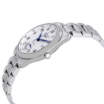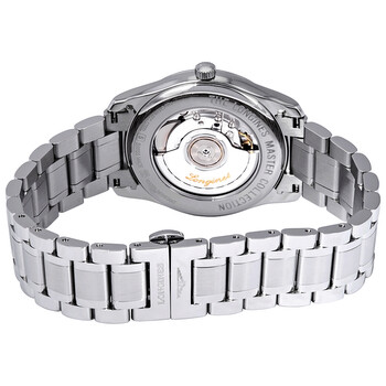 Stainless steel case with a stainless steel bracelet. Fixed stainless steel bezel. Silver dial with blue hands and Arabic numeral hour markers. Arabic numeral minute markers (at 5 minute intervals). Minute markers around the outer rim. Dial Type: Analog. Date display at the 3 o'clock position. Power reserve indicator. Longines calibre L602 automatic movement, based upon ETA 2897, containing 21 Jewels, bitting at 28800 vph, and has a power reserve of approximately 42 hours. Scratch resistant sapphire crystal. Pull / push crown. Transparent case back. Round case shape. Case size: 40 mm. Case thickness: 10 mm. Band width: 20 mm. Fold over clasp with a safety release. Water resistant at 30 meters / 100 feet. Functions: date, hour, minute, second. Master Collection Series. Casual watch style. Watch label: Swiss Made. Longines Master Collection Automatic Silver Dial Men's Watch L2.908.4.78.6.