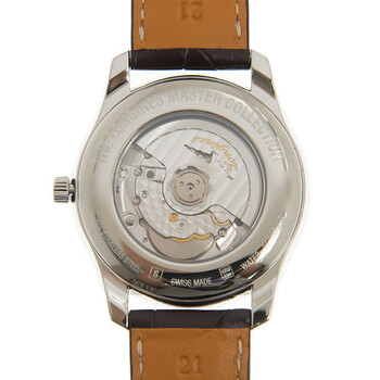 Stainless steel case with a brown alligator band. Fixed stainless steel bezel. White dial with Arabic numeral hour markers. Minute markers around the outer rim. Dial Type: Analog. Date display at the 6 o'clock position. One subdial displaying: date/moon phase. Longines Calibre L899 Automatic movement, based upon ETA A31.L91, containing 21 Jewels, bitting at 25200 vph, and has a power reserve of approximately 64 hours. Scratch resistant sapphire crystal. Pull / push crown. Transparent case back. Round case shape, case size: 42 mm. Folding clasp. Water resistant at 30 meters / 100 feet. Functions: date, hour, minute, second, moonphase. Master Collection Series. Luxury watch style. Watch label: Swiss Made. Longines Master Collection Automatic White Dial Men's Watch L2.919.4.78.5.