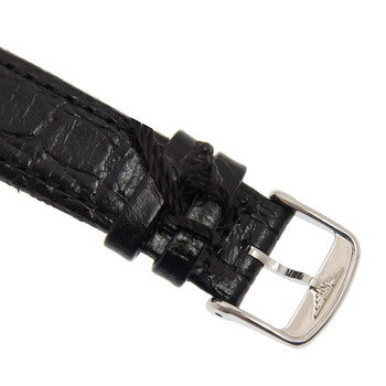 Silver-tone stainless steel case with a black leather strap. Fixed silver-tone stainless steel bezel. White dial with silver-tone hands and index hour markers. Minute markers around the outer rim. Dial Type: Analog. Date display at the 3 o'clock position. Longines Calibre L156 quartz movement. Scratch resistant sapphire crystal. Pull / push crown. Solid case back. Round case shape. Case size: 30 mm. Band width: 16 mm. Buckle clasp. Water resistant at 30 meters / 100 feet. Functions: date, hour, minute, second. Luxury watch style. Watch label: Swiss Made. Longines Presence Quartz White Dial Ladies Watch L4.320.4.12.2.