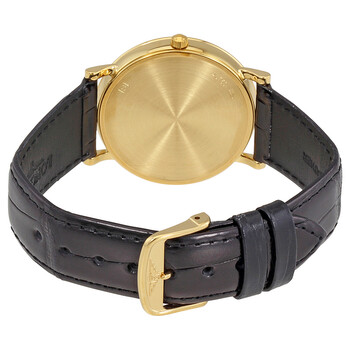 18 carat yellow gold case with a black leather strap. Fixed bezel. White dial with gold-tone hands and index hour markers. Dial Type: Analog. Date display at the 3 o'clock position. Longines Calibre L156 quartz movement. Scratch resistant sapphire crystal. Case size: 34 mm. Round case shape. Water resistant at 30 meters / 100 feet. Functions: date, hour, minute, second. Luxury watch style. Watch label: Swiss Made. Longines Presence White Dial Ladies Watch L4.777.6.12.0.