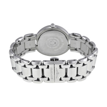 Stainless steel case with a stainless steel bracelet. Fixed stainless steel bezel. White mother of pearl dial with blue hands and diamond hour markers. Minute markers around the outer rim. Dial Type: Analog. Luminescent hands and dial markers. Date display at the 3 o'clock position. Longines calibre L129 quartz movement. Scratch resistant sapphire crystal. Fluted crown. Solid case back. Case size: 30 mm. Round case shape. Band width: 20 mm. Band length: 7 inches. Deployment clasp. Water resistant at 30 meters / 100 feet. Functions: date, hour, minute, second. Dress watch style. Watch label: Swiss Made. Item Variations: L8 112 4 87 6, L8-112-4-87-6, L8/112/4/87/6, L81124876. Longines Prima Luna Mother of Pearl Dial Ladies Watch L81124876.