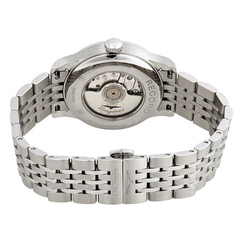 Stainless steel case with a stainless steel bracelet. Fixed stainless steel bezel. White mother of pearl dial with blue hands and diamond hour markers. Minute markers around the outer rim. Dial Type: Analog. Date display at the 3 o'clock position. Longines calibre L592.4 automatic movement with a 40-hour power reserve. Scratch resistant sapphire crystal. Pull / push crown. Transparent case back. Round case shape. Case size: 30 mm. Band width: 15 mm. Fold over clasp with a safety release. Water resistant at 30 meters / 100 feet. Functions: date, hour, minute, second, chronometer. Additional Info: set of 13 diamonds on dial (0.037 ct). Dress watch style. Watch label: Swiss Made. Item Variations: L23214876. Longines Record Automatic Chronometer Diamond White Mother of Pearl Dial Ladies Watch L2.321.4.87.6.