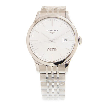 Silver-tone stainless steel case and bracelet. Fixed silver-tone stainless steel bezel. Sunray silver dial with silver-tone hands and index hour markers. Minute markers around the outer rim. Dial Type: Analog. Date display at the 3 o'clock position. Longines Calibre L888.4 Automatic movement, based upon ETA A31.L11, containing 21 Jewels, bitting at 25200 vph, and has a power reserve of approximately 64 hours. Scratch resistant sapphire crystal. Pull / push crown. Transparent case back. Round case shape, case size: 40 mm. Deployment with push button release clasp. Water resistant at 30 meters / 100 feet. Functions: date, hour, minute, second. Additional Info: original box, manual (complete accessories). Record Series. Luxury watch style. Watch label: Swiss Made. Item Variations: L28214726. Longines Record Automatic White Dial Unisex Watch L2.821.4.72.6.