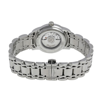 Stainless steel case with a stainless steel bracelet. Fixed stainless steel bezel. Black dial with luminous silver-tone hands and index hour markers. Arabic numeral marks the 12 o'clock position. minute markers around the outer rim. Dial Type: Analog. Luminescent hands and markers. Date display at the 3 o'clock position. Automatic movement with a 40 hour power reserve. Scratch resistant sapphire crystal. Pull / push crown. Skeleton case back. Case diameter: 30 mm. Case thickness: 9.5 mm. Round case shape. Fold over clasp. Water resistant at 50 meters / 165 feet. Functions: date, hour, minute, second. Dress watch style. Longines Saint Imier Black Dial Stainless Steel Ladies Watch L25634526.