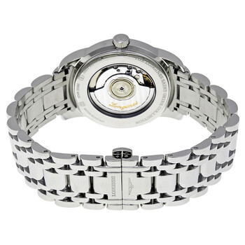 Stainless steel case with a stainless steel bracelet. Fixed stainless steel bezel. Black dial with luminous silver-tone hands and index hour markers. An Arabic numeral appears at the 12 o'clock position. Minute markers around the outer rim. Dial Type: Analog. Luminescent hands and markers. Date display at the 3 o'clock position. Longines caliber L619 automatic movement with a 42-hour power reserve. Scratch resistant sapphire crystal. Pull / push crown. Transparent case back. Case size: 38.5 mm. Case thickness: 9.5 mm. Round case shape. Fold over clasp with a push button release. Water resistant at 30 meters / 100 feet. Functions: date, hour, minute, second. Casual watch style. Longines Saint-Imier Collection Automatic Black Dial Men's Watch L27634526.