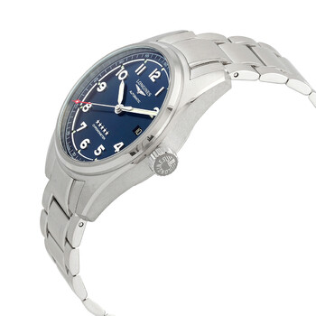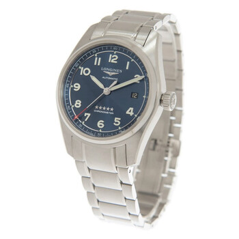 Stainless steel case with a stainless steel bracelet. Fixed stainless steel bezel. Blue dial with luminous silver-tone hands and Arabic numeral hour markers. Arabic numeral minute markers (at 5 minute intervals). Minute markers around the outer rim. Dial Type: Analog. Luminescent hands and markers. Date display at the 3 o'clock position. Longines calibre L888.4 automatic movement, based upon ETA A31.L11, containing 21 Jewels, bitting at 25200 vph, and has a power reserve of approximately 64 hours. Scratch resistant sapphire crystal. Screw down crown. Solid case back. Round case shape. Case size: 40 mm. Case thickness: 12.2 mm. Band width: 21 mm. Triple fold over clasp with a safety release. Water resistant at 100 meters / 330 feet. Functions: date, hour, minute, second, chronometer. Spirit Series. Luxury watch style. Watch label: Swiss Made. Longines Spirit Automatic Chronometer Blue Dial Men's Watch L3.810.4.93.6.