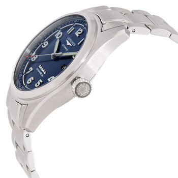 Silver-tone stainless steel case and bracelet. Fixed silver-tone stainless steel bezel. Blue dial with silver-tone hands and Arabic numeral hour markers. Minute markers around the outer rim. Dial Type: Analog. Luminescent hands and markers. Date display at the 3 o'clock position. Longines Calibre L888.4 Automatic movement, based upon ETA A31.L11, containing 21 Jewels, bitting at 25200 vph, and has a power reserve of approximately 64 hours. Scratch resistant sapphire crystal. Screw down crown. Solid case back. Round case shape, case size: 40 mm. Deployment with push button release clasp. Water resistant at 100 meters / 330 feet. Functions: date, hour, minute, second, chronometer. Additional Info: original box, international warranty card, manual (complete accessories). Spirit Series. Luxury watch style. Watch label: Swiss Made. Longines Spirit Automatic Chronometer Blue Dial Men's Watch L3.811.4.93.6.