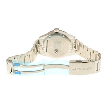 Silver-tone stainless steel case and bracelet. Bi-directional rotating silver-tone stainless steel bezel with a green ceramic insert. Anthracite dial with gold-tone hands and Arabic numeral hour markers. Minute markers around the outer rim. Dial Type: Analog. Luminescent hands and markers. Date display at the 6 o'clock position. Longines Calibre L844.4 automatic movement with a 72-hour power reserve. Scratch resistant sapphire crystal. Screw down crown. Solid case back. Round case shape, case size: 39 mm, case thickness: 13.5 mm. Band width: 21 mm. Fold over clasp with a safety release. Water resistant at 100 meters / 330 feet. Functions: date, hour, minute, second. Spirit Zulu Time Series. Sport watch style. Watch label: Swiss Made. Longines Spirit Zulu Time Automatic Anthracite Dial Men's Watch L3.802.4.63.6.