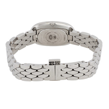Silver-tone stainless steel case with a silver-tone stainless steel bracelet. Fixed diamond set bezel. Silver dial with blue hands and Roman numeral hour markers. Dial Type: Analog. Longines Calibre L963 quartz movement. Scratch resistant sapphire crystal. Solid case back. Case size: 18.9mm x 29.4mm. Oval case shape. Hidden folding clasp. Water resistant at 30 meters / 100 feet. Functions: hour, minute. Additional Info: 56 diamonds (0.280 carats). Dress watch style. Watch label: Swiss Made. Item Variations: L2.305.0.71.6. Longines Symphonette Diamond Ladies Watch L2.305.0.71.6.