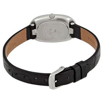 Stainless steel case with a black leather strap. Fixed stainless steel bezel. White mother of pearl dial with blue hands and Arabic numeral hour markers. Dial Type: Analog. Longines calibre L963 quartz movement. Scratch resistant sapphire crystal. Pull / push crown. Solid case back. Oval case shape. Case dimensions: 18.9 mm x 29.4 mm. Case thickness: 5.85 mm. Band width: 9 mm. Tang clasp. Water resistant at 30 meters / 100 feet. Functions: hour, minute. Symphonette Series. Dress watch style. Watch label: Swiss Made. Item Variations: L2.305.4.83.0. Longines Symphonette Mother of Pearl Dial Ladies Watch L2.305.4.83.0.