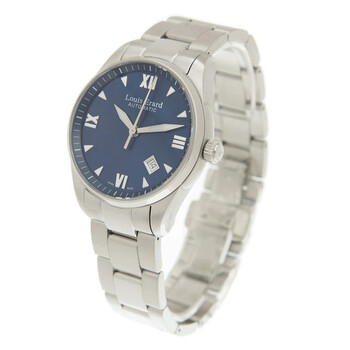 Silver-tone stainless steel case and bracelet. Fixed silver-tone stainless steel bezel. Blue dial with silver-tone hands and index hour markers. Minute markers around the outer rim. Dial Type: Analog. Luminescent hands and markers. Date display between 4 and 5 o'clock position. Automatic movement. Scratch resistant sapphire crystal. Transparent see through case back. Round case shape, case size: 40 mm. Deployment with push button release clasp. Water resistant at 50 meters / 165 feet. Functions: date, hour, minute, second. Additional Info: original box, international warranty card, manual (complete accessories). Heritage Series. Luxury watch style. Watch label: Swiss Made. Louis Erard Heritage Automatic Blue Dial Men's Watch 69101AA05.BMA19.