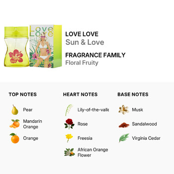 Love Love Ladies Sun & Love EDT Spray 3.4 oz is available for shipping within the Contiguous United States & Canada. Barcode: 3331431000039. Treat yourself or someone special to this timeless fragrance that’s sure to turn heads and lift spirits.