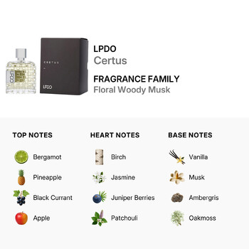 Housed in a sleek 3.4 oz bottle, Certus by Lpdo is more than just a scent; it's an experience that transcends gender norms. Its expertly blended notes ensure that it resonates with everyone, making it a perfect addition to any fragrance collection. Embrace the timeless appeal of Certus and let its enchanting aroma elevate your everyday life.