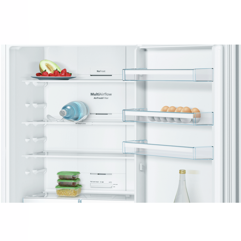 დაიღალეთ საყინულის გალღობით? Bosch KGN49XW30U აღჭურვილია No Frost ტექნოლოგიით, რომელიც სრულად გათავისუფლებთ ყინულის ხელით ლღობის დამღლელი პროცესისგან. ის უზრუნველყოფს ჰაერის მუდმივ ცირკულაციას ყინულის წარმოქმნის თავიდან ასაცილებლად, რაც ოპტიმალურ ეფექტურობასა და მეტ ადგილს გიტოვებთ გაყინული პროდუქტებისთვის. მაღალეფექტურ ინვერტორულ ძრავასთან ერთად, ეს მაციVari тихо მუშაობს და ნაკლებ ენერგიას მოიხმარს, რისი წყალობითაც A++ ენერგოეფექტურობის კლასი აქვს მინიჭებული.