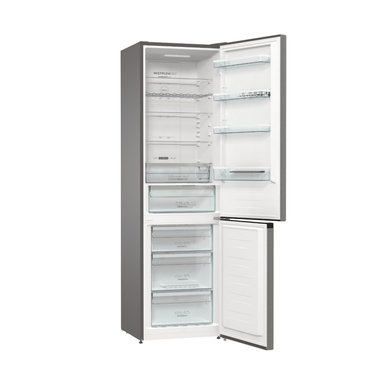 GORENJE NRK620FAXL4 მაცივარი აღჭურვილია უახლესი ტექნოლოგიებით, რათა თქვენი პროდუქტები მაქსიმალურად დიდხანს შეინახოს. No Frost Plus სისტემა სრულად გამორიცხავს ყინულის წარმოქმნას საყინულეში, ხოლო IonAir ტექნოლოგია MultiFlow 360° სისტემასთან ერთად ქმნის იდეალურ მიკროკლიმატს ყველა თაროზე. ინვერტორული კომპრესორი უზრუნველყოფს ჩუმ და ეკონომიურ მუშაობას, ხოლო E ენერგოეფექტურობის კლასი დაგეხმარებათ ელექტროენერგიის დაზოგვაში.