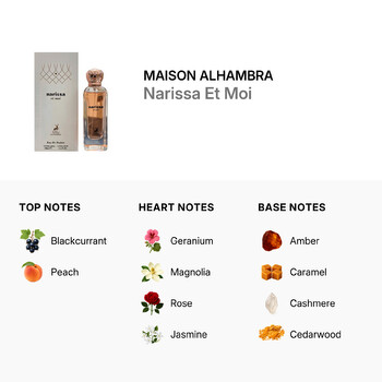 Discover the magic of Maison Alhambra's Narissa Et Moi, exclusively available for shipment within the Contiguous United States and Canada. Elevate your fragrance collection with this luxurious scent and let its enchanting aroma transport you to a world of sophistication and allure.