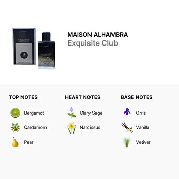 Experience the artistry of Maison Alhambra and indulge in the timeless allure of Exquisite Club—a fragrance that defines sophistication and charm.