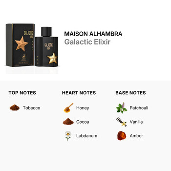 Crafted by Maison Alhambra, a renowned Middle Eastern fragrance house from the United Arab Emirates, this scent embodies the artistry and passion of fine perfumery. Designed for the man who appreciates luxury and elegance, Galactic Elixir is perfect for any occasion, whether it's a formal evening event or a casual day out.