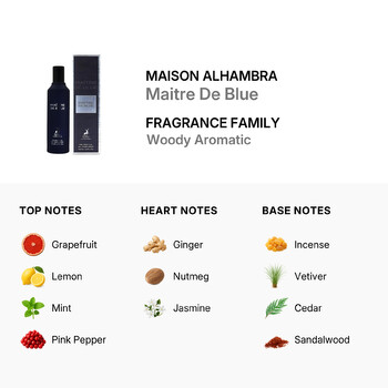 Crafted by Maison Alhambra, a brand celebrated for its high-quality Middle Eastern fragrances, Maitre De Blue is more than just a scent—it’s a sensory experience. The sleek bottle design and generous 5.07 oz size make it a smart and stylish addition to your fragrance collection.