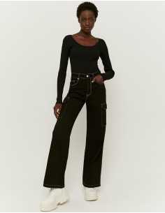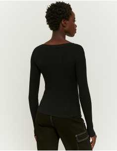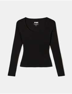მაისურები Tally Weijl - BLACK CROPPED BASIC T-SHIRT