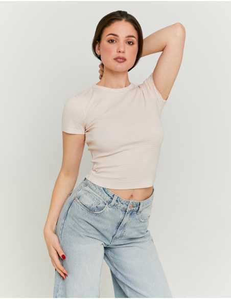 მაისურები Tally Weijl - Black Floral Ribbed Basic T-shirt