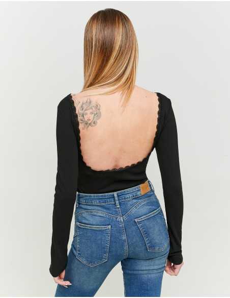 მაისურები Tally Weijl - Black Open Back T-Shirt