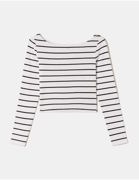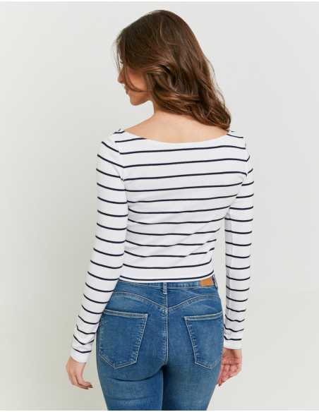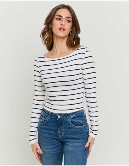 მაისურები Tally Weijl - Boat Neck Striped White T-shirt