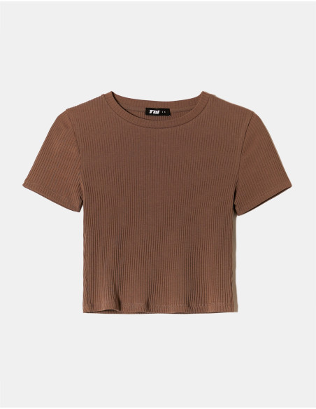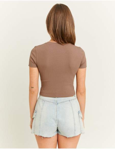მაისურები Tally Weijl - Brown Basic Cropped T-shirt