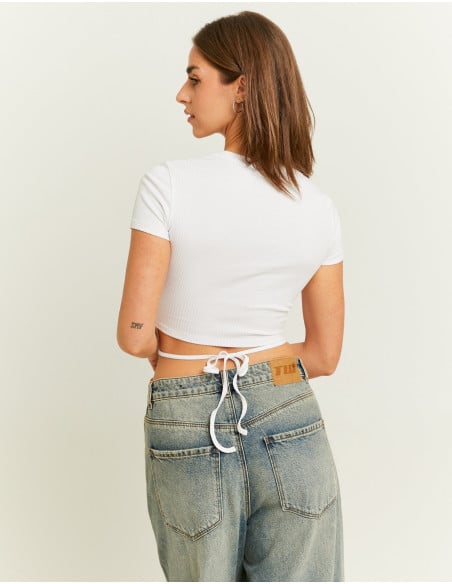 მაისურები Tally Weijl - White Lace Up T-Shirt
