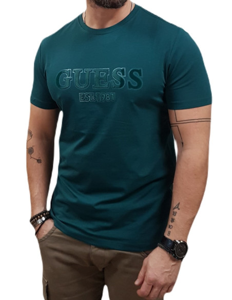 მაისური GUESS - SS CN SPRAYED FLOCK LOGO TEE