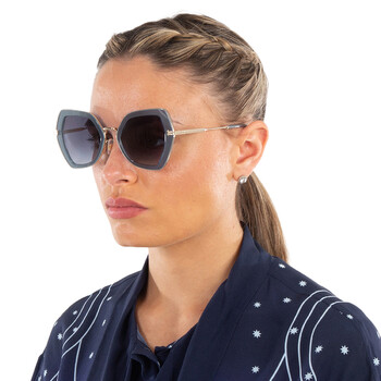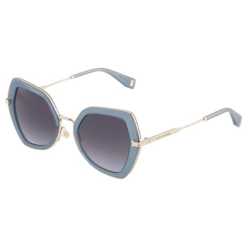 Marc Jacobs Sunglasses. Series number: MJ 1078/S. Color code: 0PJP/9O. Shape: Butterfly. Lens Width: 52 mm. Lens Bridge: 21 mm. Arm Length: 145 mm. 100% UV protection. Non-Polarized. Frame Material: Metal. Frame Color: Blue/Gold. Lenses Type: Grey Gradient. Rim Style: Full-Rim. UPC/EAN code: 716736778327. Marc Jacobs Grey Gradient Butterfly Ladies Sunglasses MJ 1078/S 0PJP/9O 52.