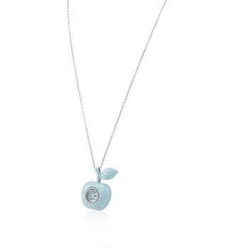 Blue stainless steel case with a silver-tone stainless steel chain bracelet. Fixed blue stainless steel bezel. Silver dial with silver-tone hands. Dots set at the 3, 6, 9 and 12 o'clock positions. Dial Type: Analog. Quartz movement. Scratch resistant mineral crystal. Solid case back. Unique case shape. Water resistant at 30 meters / 100 feet. Functions: hour, minute. Blue Apple Bauble Series. Dress watch style. Marc Jacobs Quartz Pale Blue Apple Bauble Ladies Watch Necklace MJ0120190886.