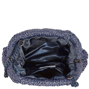 Maria La Rosa Ladies Clutch. SKU: BR22.24.3 MLR-NAVY. Color: Blue. Size: 30 x 20 x 5 cm. Maria La Rosa Blue Game Raffia Clutch Bag. This handcrafted clutch from the iconic Maria La Rosa collection, made from woven ribbon fabric on ancient looms, features a signature pattern and a matching chain for crossbody wear, offering both elegance and functionality for all seasons. Made in Italy.