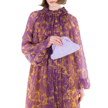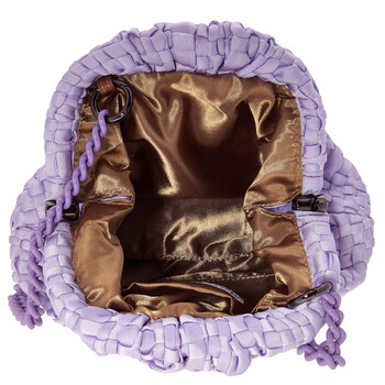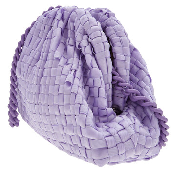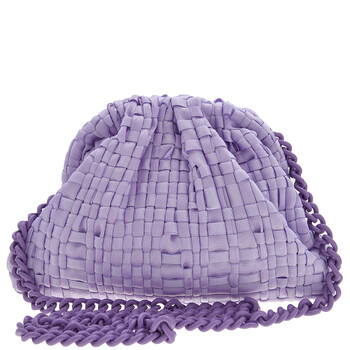 Maria La Rosa Ladies Clutch. SKU: 2 MLR-RIBBON LILAC. Color: Purple. Size: W 22cm x H: 16cm x D: 8cm. Maria La Rosa Mini Game Clutch Bag. This women's clutch, made from woven ribbon fabric handcrafted on antique looms, combines metropolitan elegance with practicality, offering both style and functionality. It features a tone-on-tone chain for crossbody wear and is lined with 100% viscose satin, complete with an applied pocket. Material: 100% Polyester. Made in Italy.