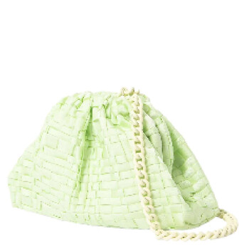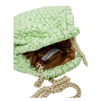 Maria La Rosa Ladies Clutch. SKU: 2 MLR-RIBBON PISTACHIO. Material: Polyester. Color: Green. Size: W 22cm x H: 16cm x D: 8cm. Maria La Rosa Mini Game Clutch Bag. This women's clutch, made from woven ribbon fabric handcrafted on antique looms, combines metropolitan elegance with practicality, offering both style and functionality. It features a tone-on-tone chain for crossbody wear and is lined with 100% viscose satin, complete with an applied pocket. Material: 100% polyester. Made in Italy.