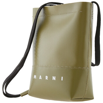 Marni Men's Crossbody. SKU: SBMQ0068A0-LEAV GREEN. Color: Green. Size: 20 x 14 x 6.5 cm. Marni Green Museu Logo-Print Mini Bag. This mini bag features tonal stitching, a logo print on the front, a rectangular shape, top zip fastening, an adjustable shoulder strap, and a main compartment. Outer: Polyurethane 64%, Polyester 36%.